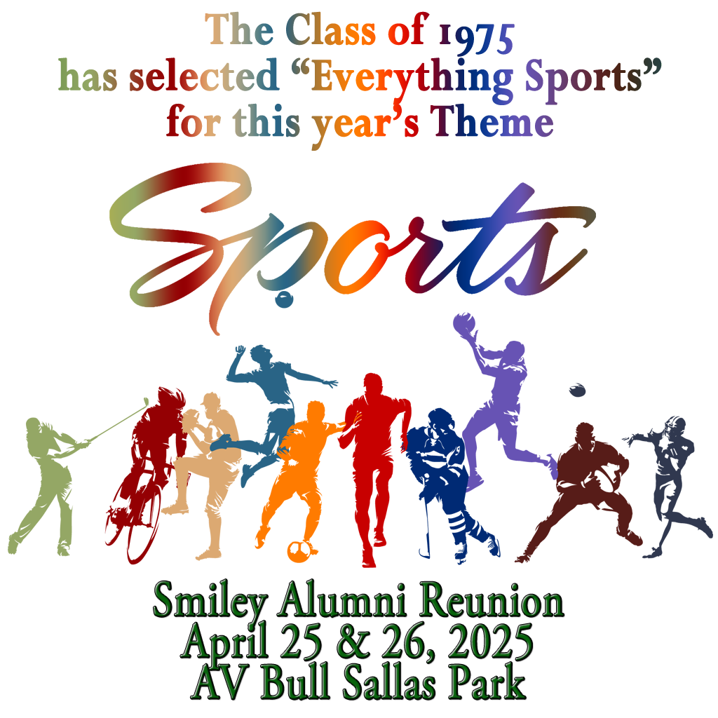Welcome to the Smiley Alumni Reunion website. This website is exclusively for reunion information only. In an effort to contain costs, there will be no further reunion mailouts. We hope you will enjoy this site for all of your reunion information. Please share this website with other Smiley Alumni.