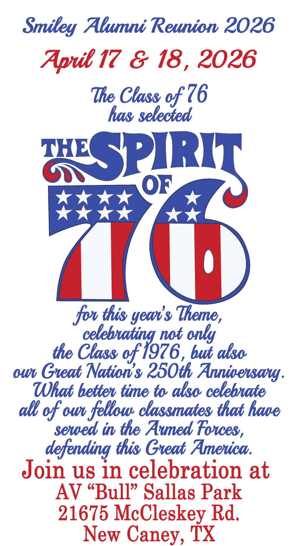 Notice: The Dates for the 2026 Smiley Alumni Reunion are April 17 & 18